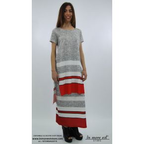 VESTITO GRIGIO MEZZE MANICHE FONDO RIGHE...