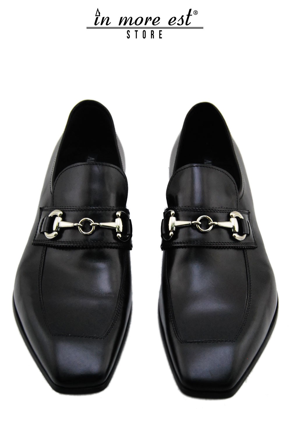 MOKASSIN ELEGANTE SCHWARZ KALBSLEDER BISS-METAL-SILBER, QUADRATISCHE SPITZE Vergrößern