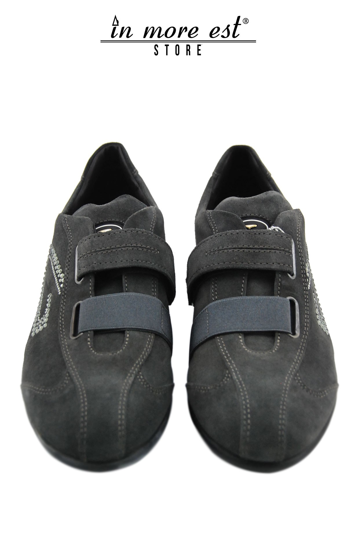 SNEAKERS BASSA CAMOSC GRIGIO LOGO G SVAROWSKY CHIUSURA STRAP