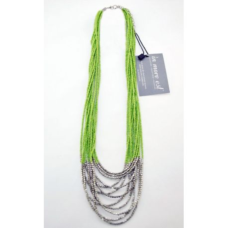 Lange halskette grün und silberfarben, matt, mehrfach verseilt perlen kunststoff grün perlen, aus aluminium, matt.