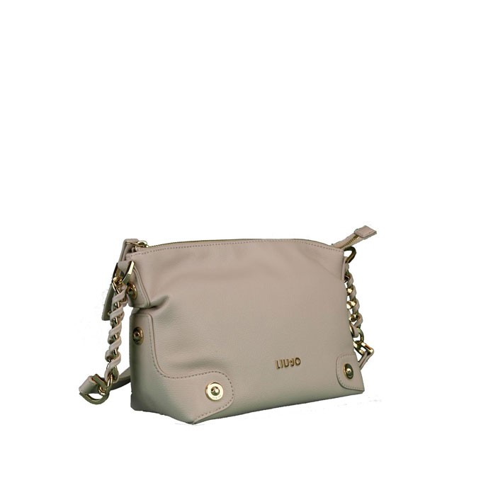 Tasche Liu Jo tracollina lavendel in kunstleder mit schultergurt semirigida mit kette, reißverschluss und verzierung gold.