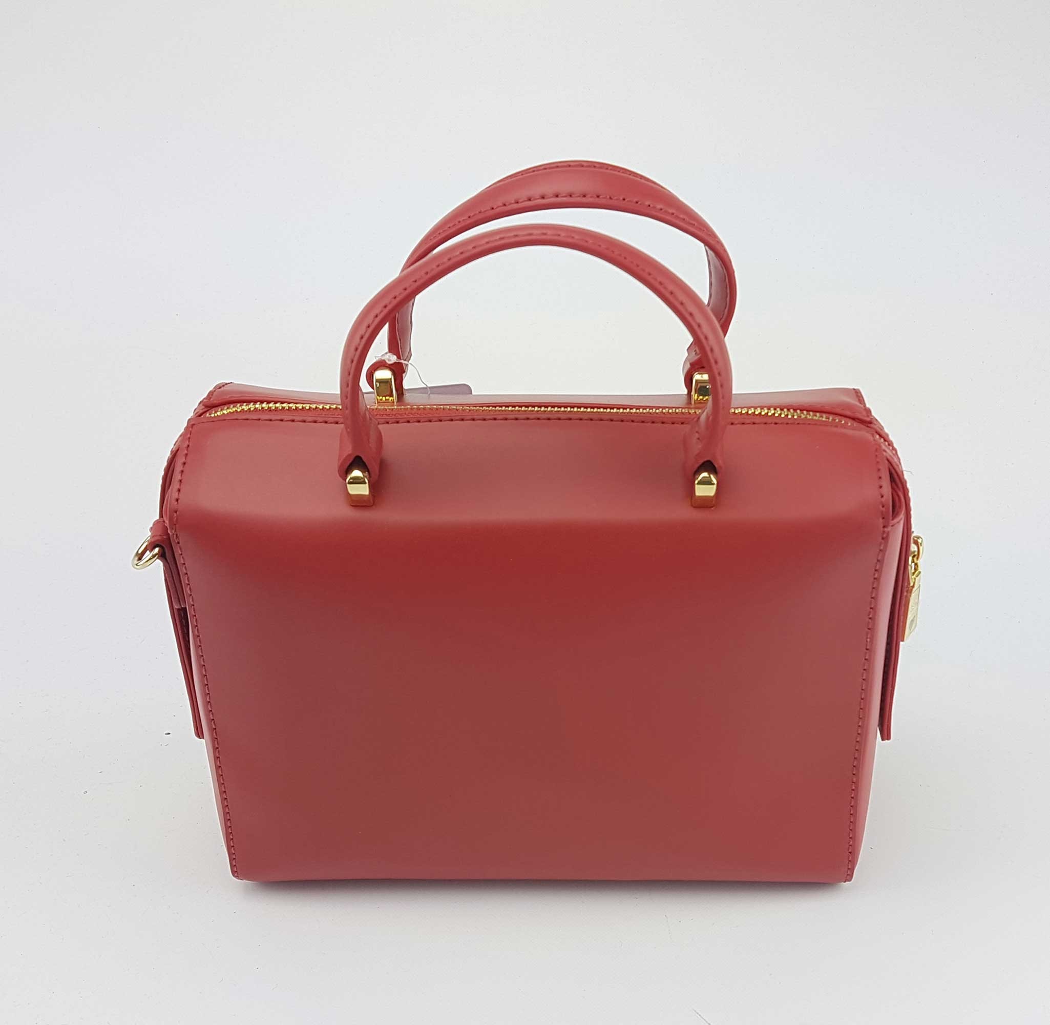 Tasche topcase Love Moschino aus kunstleder rot, mit abnehmbarem schultergurt. Anwendung ein herz, goldene farbe, in der vorderseite der tasche, logo der marke angewendet. Futter innen stoff in rot, innen eingrifftaschen verstaut werden. Beutel staub schützen original inbegriffen.