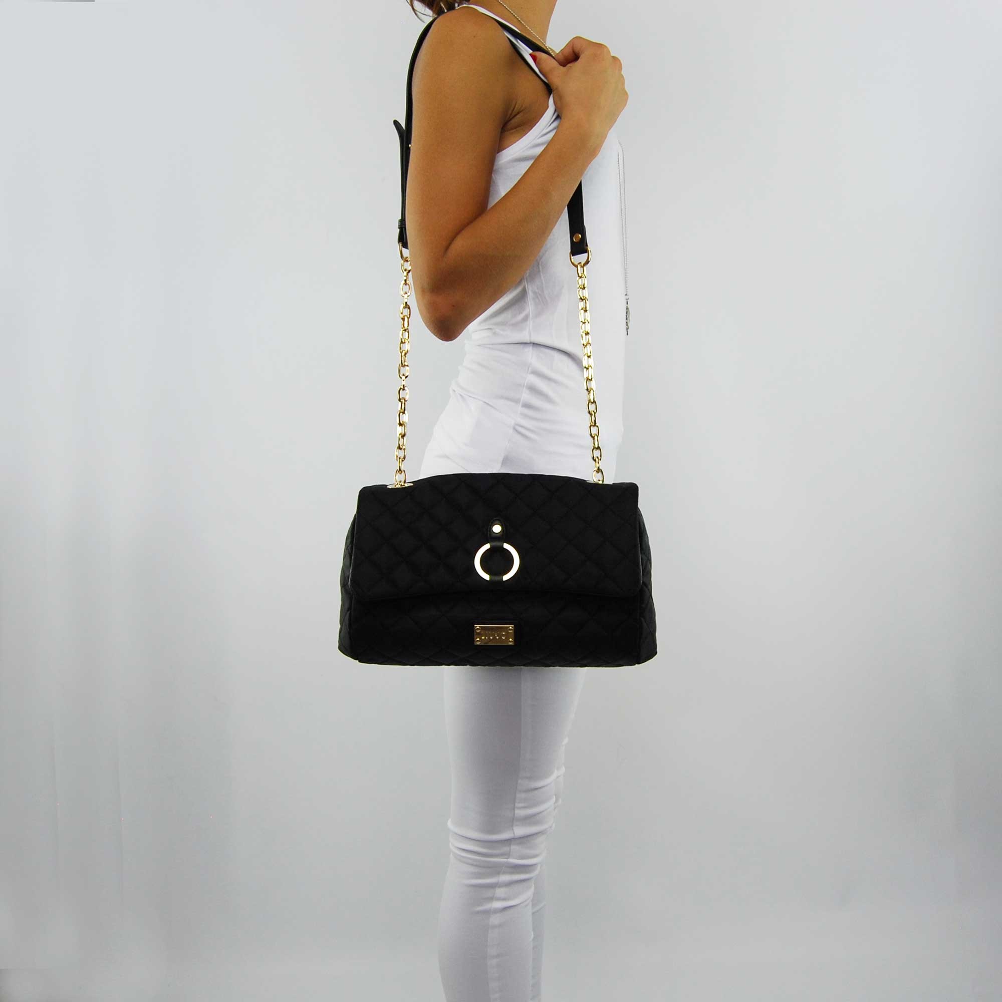 Umhängetasche von Liu Jo L tulpe wattierten stoff schwarz, verschluss mit knopf automatik, typenschild mit Liujo-logo und applikationen in goldtönen. Verstellbarer schultergurt. Im inneren befinden sich zwei taschen zur aufbewahrung von kleinen gegenständen. Tasche schützen staub enthalten.