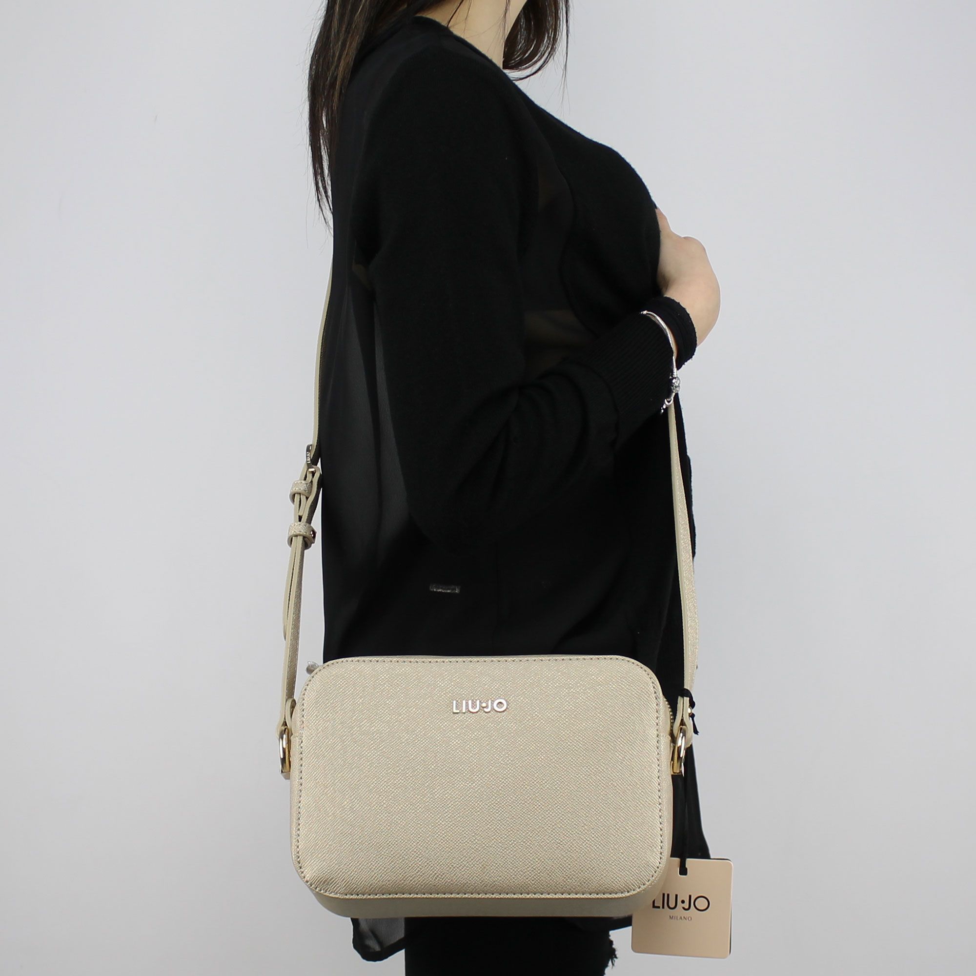 Tasche Liu Jo tracollina s cross body manhattan color gold, verstellbarer schultergurt. Schließen mit goldenen reißverschluss. Logo der marke angewendet, von vorne. Innerhalb eingrifftaschen handschuhfach, innenfutter rosa, klar. Tasche schützen sie staub enthalten.