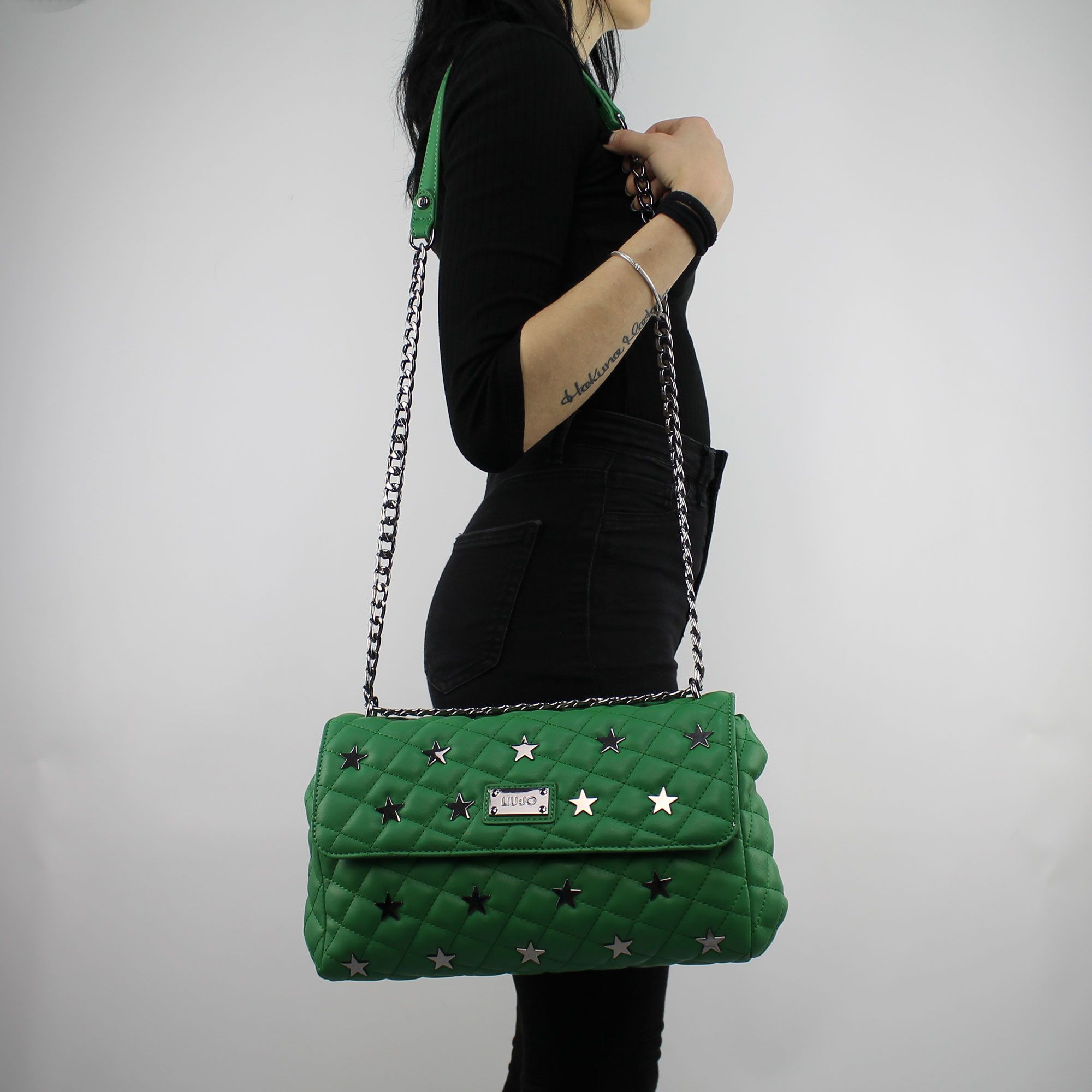 Schultertasche m umhängetasche kalifornien elektrisch grün, kunstleder gesteppt, mit anwendung von metall stollen in der form der stern der farbe gewehrlauf. Die umhängetasche mit schulterriemen aus metall in wagenfarbe mit nieten und ein stück in kunstleder schwarz; Der schulterriemen ist verstellbar in der länge durch scrollen in die ringe befestigen können, verwenden sie die tasche, in mehr als einer hinsicht. Im inneren befinden sich ein fach gut großen beschichtet, futter grün elektro-und zwei eingrifftaschen interne port-objekte, von denen eine mit reißverschluss. Das hauptfach fragt durch die klappe der haupt -, der hat die aufhängung verzahnung. Auf der klappe an der vorderseite ist angewendet das metall-logo von Liu Jo. Mit der tasche schützen sie staub und logata.