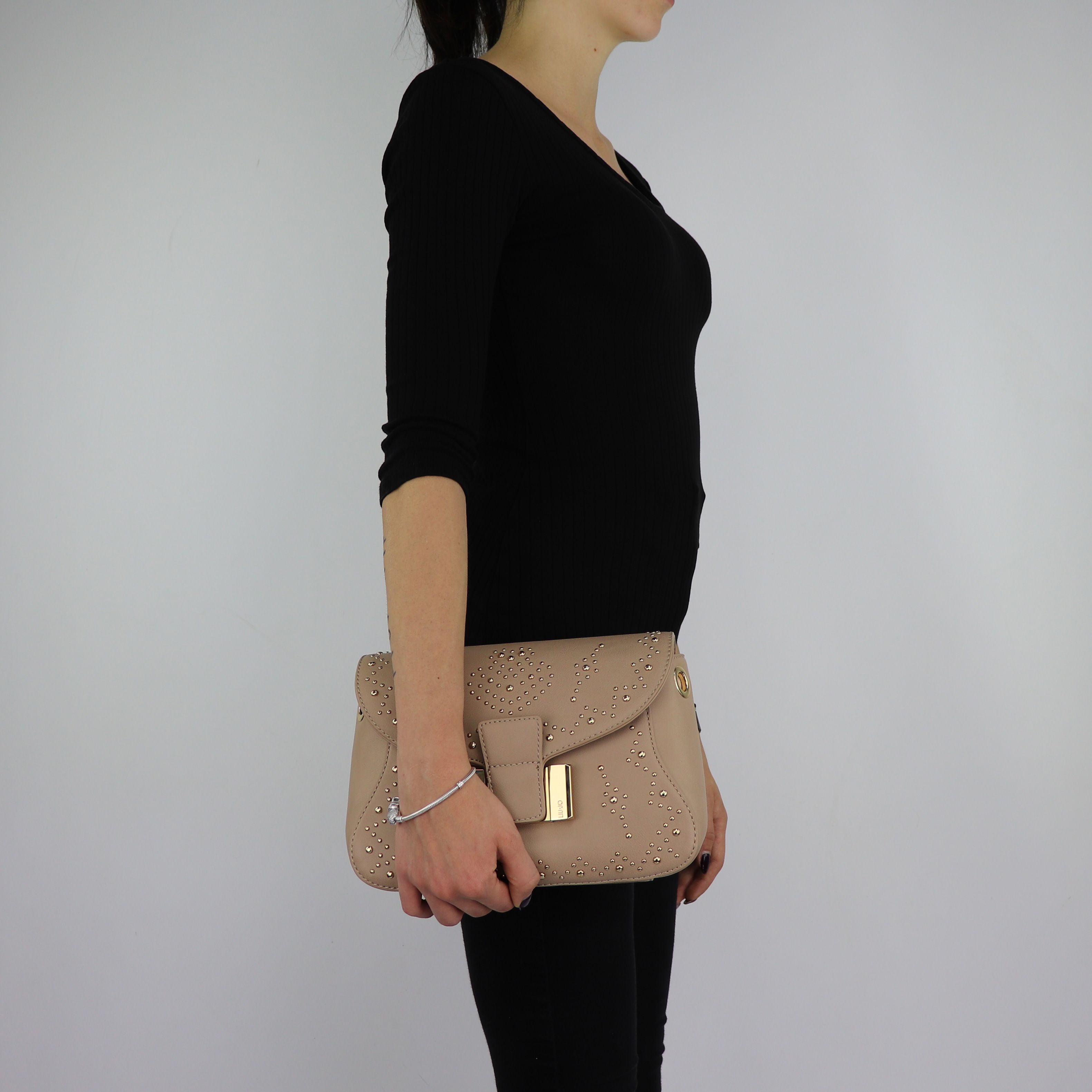 Umhängetasche von Liu Jo in kunstleder glatt, farbe sandstein. Die tasche ist mit einem schultergurt aus metall und goldenem kunstleder farbe sandstein abnehmbarem nach belieben verwendet werden, auch als clutch. Verschluss mit klappe und goldenen haken verriegelung mit gravur des logos der marke. Vorne die tasche zeigt sich mit einem muster abstrakt von microborchie goldenen. Im inneren gibt es eine einzige zeitschrift. Die tasche hat auch zwei eingrifftaschen handschuhfach-davon eine verschließbar mit reißverschluss. Das futter beschichtung innen ist der stoff rosa puder. Schriftzug der marke in goldenen metall angewendet seitlich. Tasche schützen sie staub enthalten.