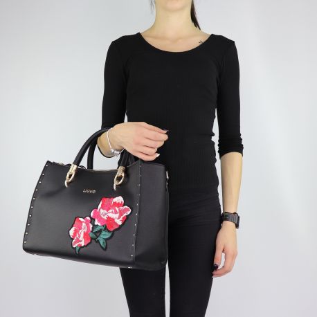 Tasche topcase Liu Jo leder bottalata schwarz. Die tasche aus der form, die sehr entschlossen ist mit griffen, die denen der usa, an der börse durch metall-ringe vergoldet mit der darstellung einer schlange. Sie verfügt über drei fächer, von denen eines zentral verschließbar mit magnetknopf und zwei verschließbare reißverschluss-goldene. Die innenseite ist aus stoff in den farben rosa puder mit der anwesenheit eingrifftaschen-port-objekte. Vorne das topcase ist einzigartig gemacht von einem blumenmuster bestickt; latipresenta mikro-metall-nieten und goldenen mitte " platz der schriftzug des logos, das ebenfalls aus vergoldetem metall. Unter der tasche sind der schutz füße und ein verstellbarer schultergurt und abnehmbarem nach belieben. Tasche schützen sie staub enthalten.