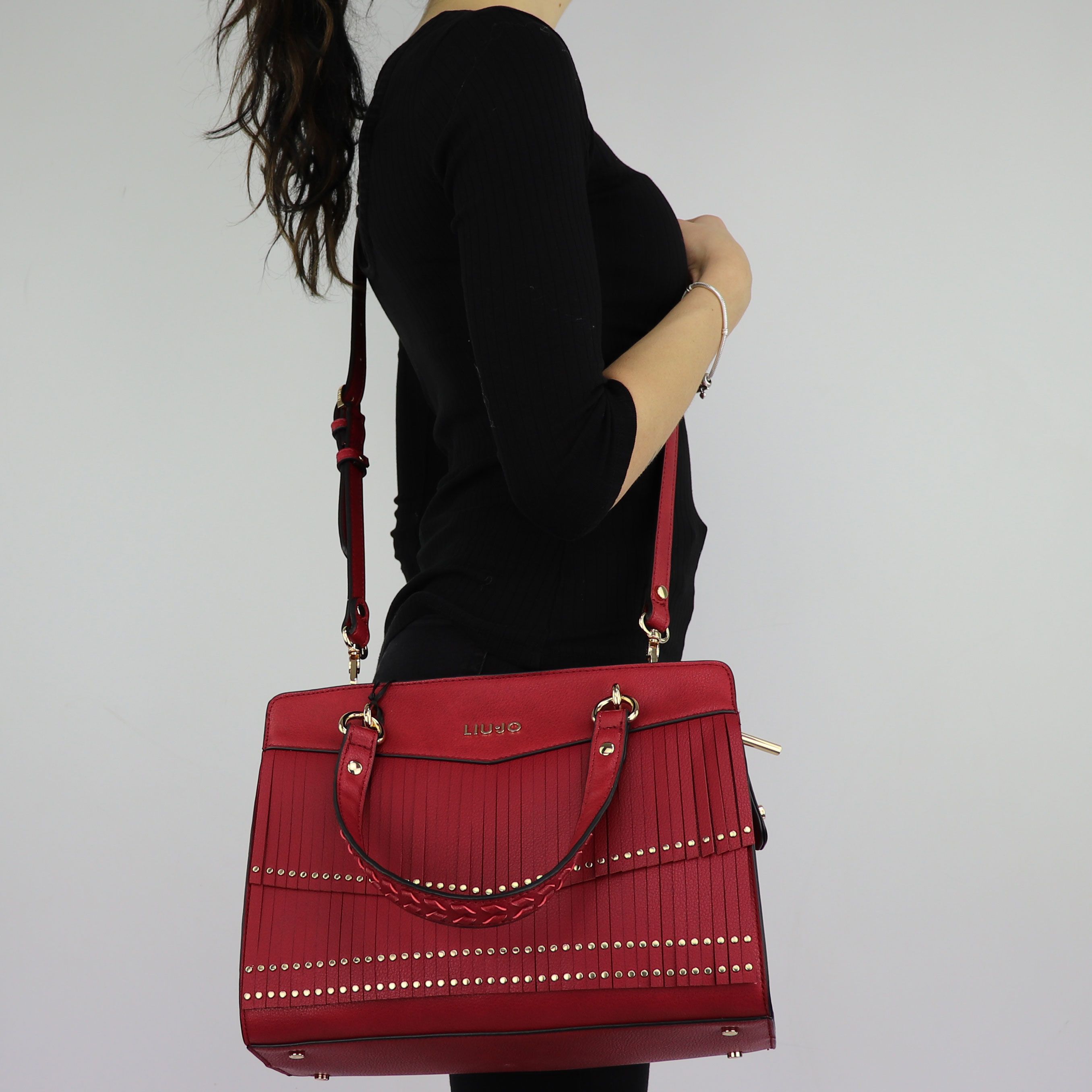 Tasche topcase Liu Jo, rote kunstleder-effekt bottalato. Diese praxis und casual linie topcase hat ein einzigartiges praktische fächer verschließbar mit reißverschluss goldene. Die die börse zeigt sich mit weichen fransen und microborchie metall gold geben einzigartigen und eleganten look, innen bietet zwei staufächer, von denen eine verschließbar mit reißverschluss. Das futter beschichtung innen ist im stoff rot. Vorne hat den schriftzug aus dem logo der marke aus vergoldetem metall. Beutel staub schützen original inbegriffen.