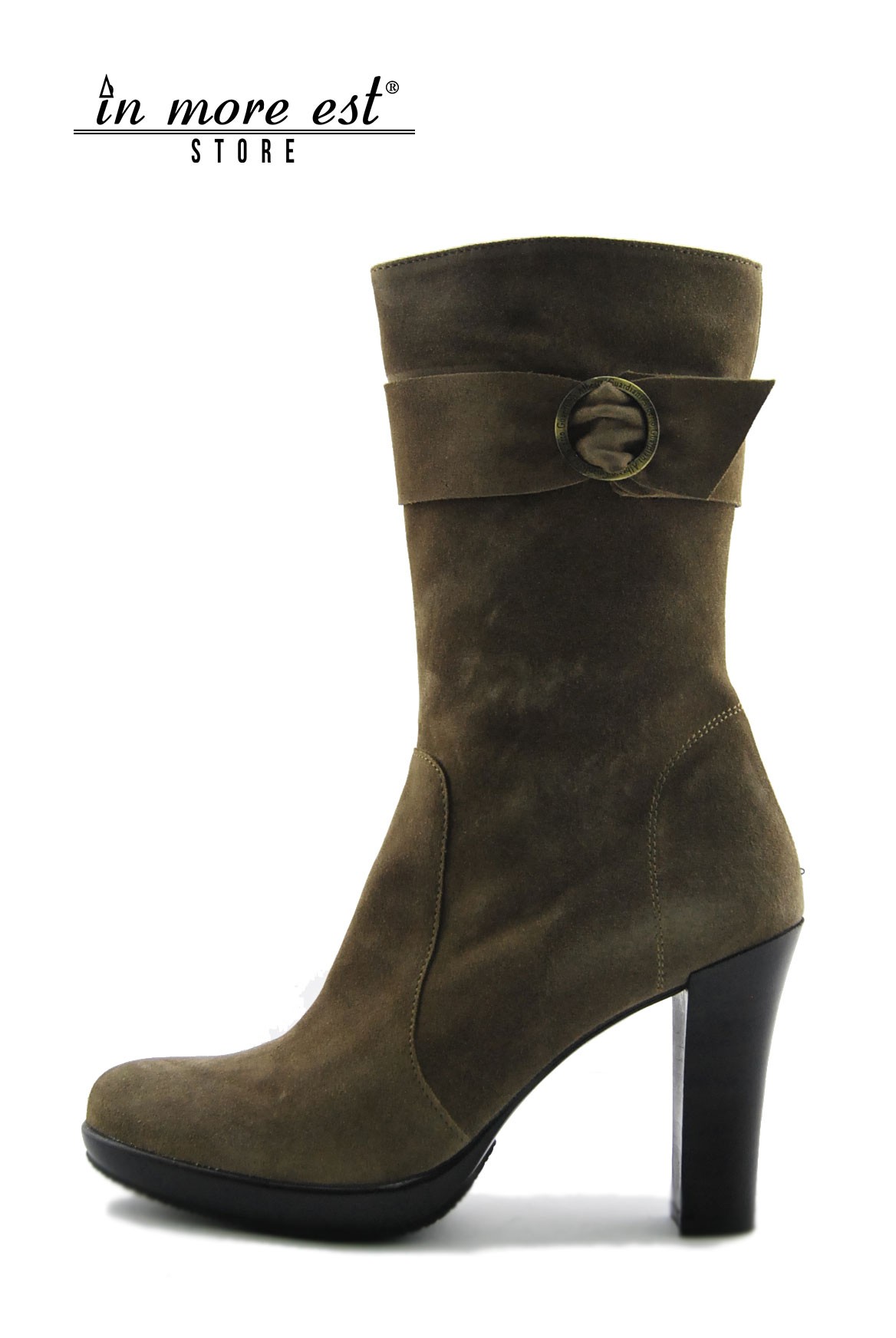 STIVALE MEDIO TORTORA CAMOSCIO GAMBALE MEDIO FIBBIA METAL ORO LOGO AG