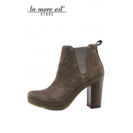 TRONCHETTO MEDIO MARRONE CAMOSCIO GAMBALE BASSO FONDO GOMMA MARR TACCO LEGNO MARRONE