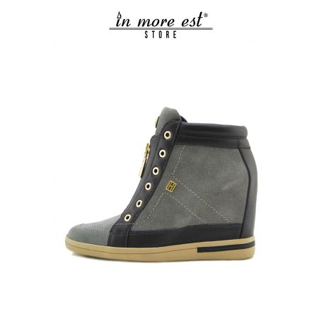 SNEAKERS ALTA ZEPPA INTERNA BLU/GRIGIA CAMOSCIO/PELLE ALLACC ZIP METAL ORO FONDO GOMMA TORTORA