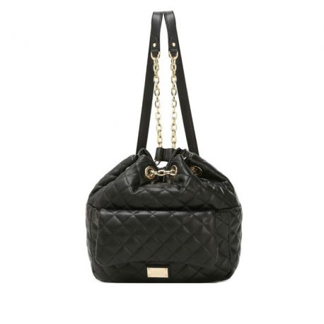 Backpack faux leather quilted with practice external pocket, plate with logo, closure with strap.