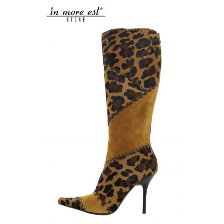 High boot, leopard print pony, suede brown, inpunture brown leather