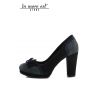 Decollete' high with bow plateau, suede black/grey/blue