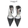 Decollete' in the middle, in black calf leather with metal buckles, burnish, lacing on the ankle