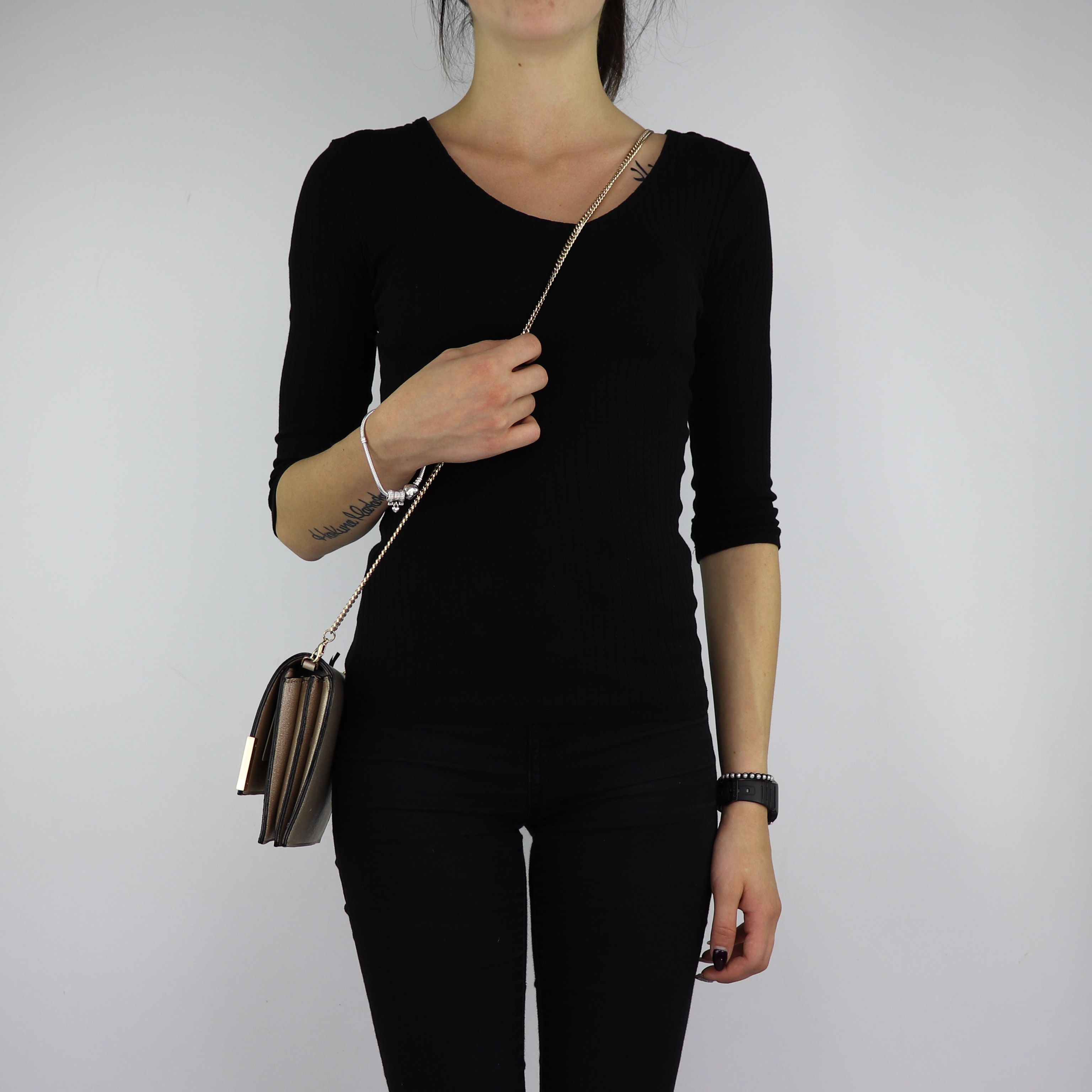 Purse clutch bag in imitation leather with golden saffiano effect. The bag has a flap closure and magnetic button, with small bands of golden to the sides of it. Lettering of the brand positioned at the center is also golden. The clutch it is equipped with three compartments, one of which closed with zip, but also of the pockets for cards and a pocket for small objects. The interior is coated fabric pink with a motif of dots and initials of the brand color black. The bag has a shoulder strap in gold metal rings that can be removed at will. Bag protect dust origiale included.