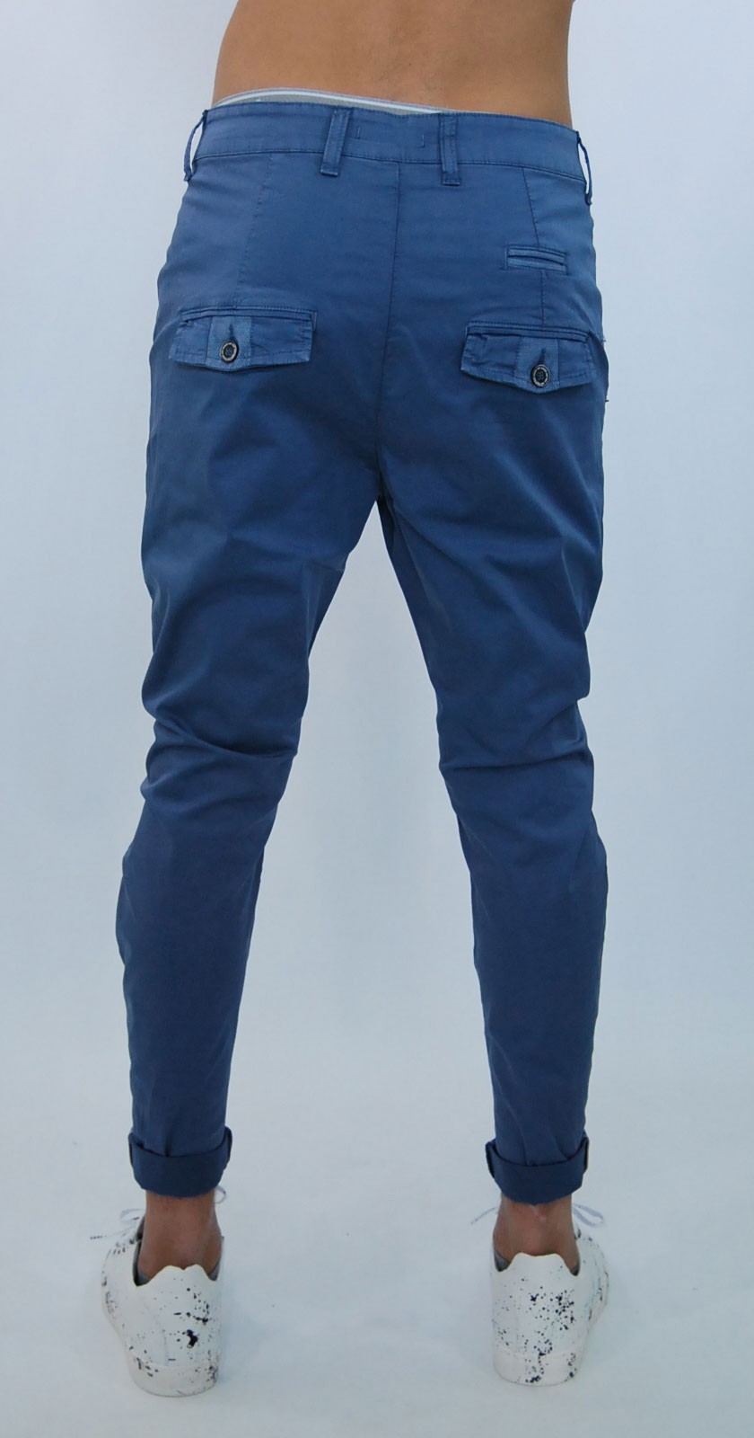 Pants, stretch, low crotch, pockets, gusseted, color indigo blue, material cotton