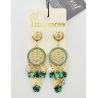 Pendant earrings in gold color metal with rhinestone and decoration plastic green and various pendants in metal gold and plastic printed green.