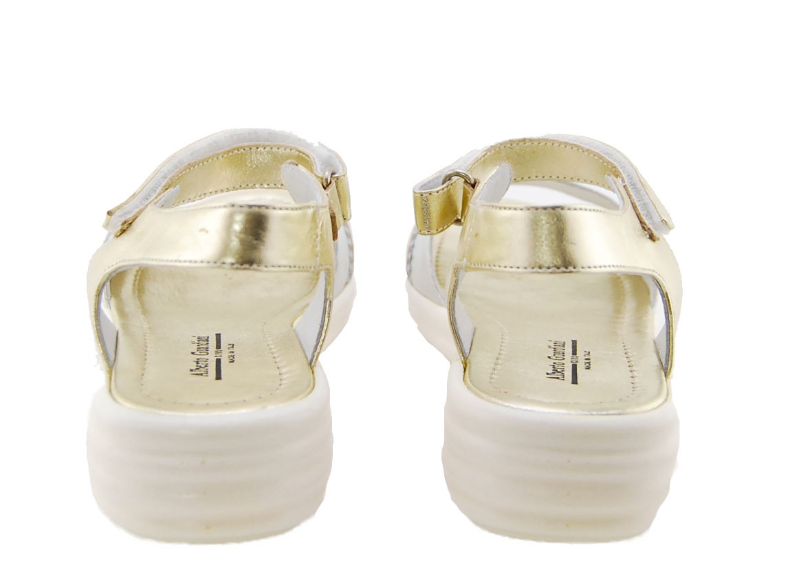 SANDAL CALF LAMIN GOLD/ARG BOTTOM RUBBER CREAM G LOGO METAL ARG