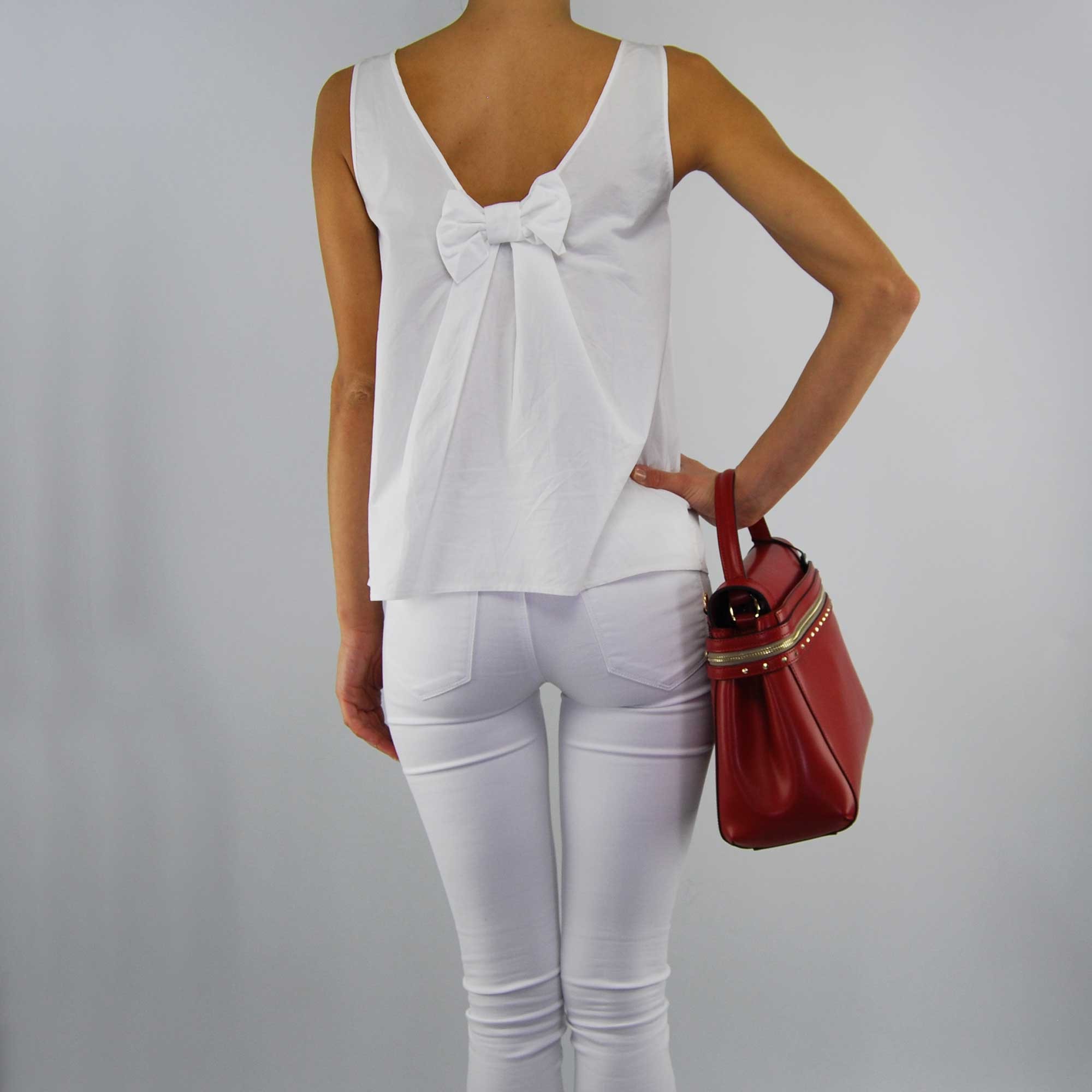 Bag satchel Twin-Set Cécile Deux calfskin anti-scratch ruby red in color, with removable strap. Closure with flap and hidden button magnetic and pocket with zip closure in gold color. Application of small gold studs all along the zip, studs and golden logo Twin Set printed. Inside small storage pockets, inner lining color a light pink. Bag protect dust original included.