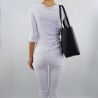 Shopping bag by Patrizia Pepe reversible. Can be worn from the side of the dark blue or the pink side, with handles blue. Patrizia Pepe Logo applied in the front side. Self-tie closure self-tie wrap closure. Inside there is a maxi clutch bag blue, removable, with handle and zip closure. Internal pockets for small objects. Bag protect dust, including the original.