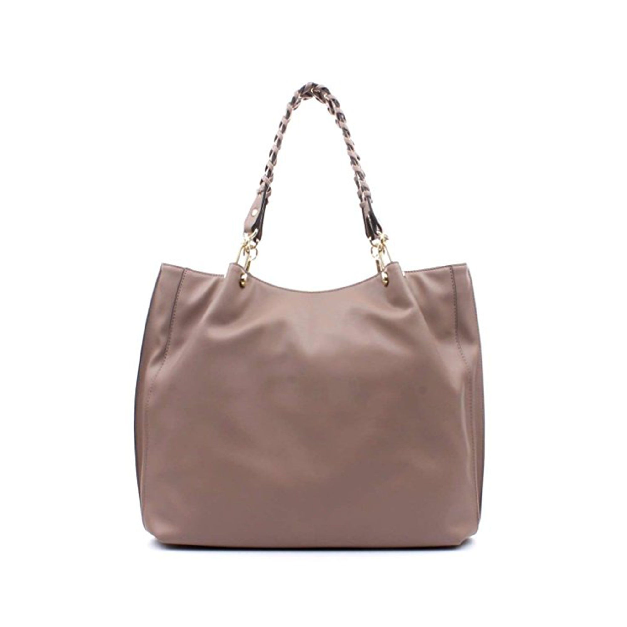 Shopping bag Satchel Liu Jo faux leather brown, with double handle and removable and adjustable shoulder strap. Divided into three compartments: one rear ended with snap button, one central zipper closure, one on the front, closed by hook and ring joint. Inside pockets for storage. Inner lining color pink old. Application of a tag on the handle. Logo Liu Jo applied front. Inserts and closures in gold color. Bag protect dust, including the original.