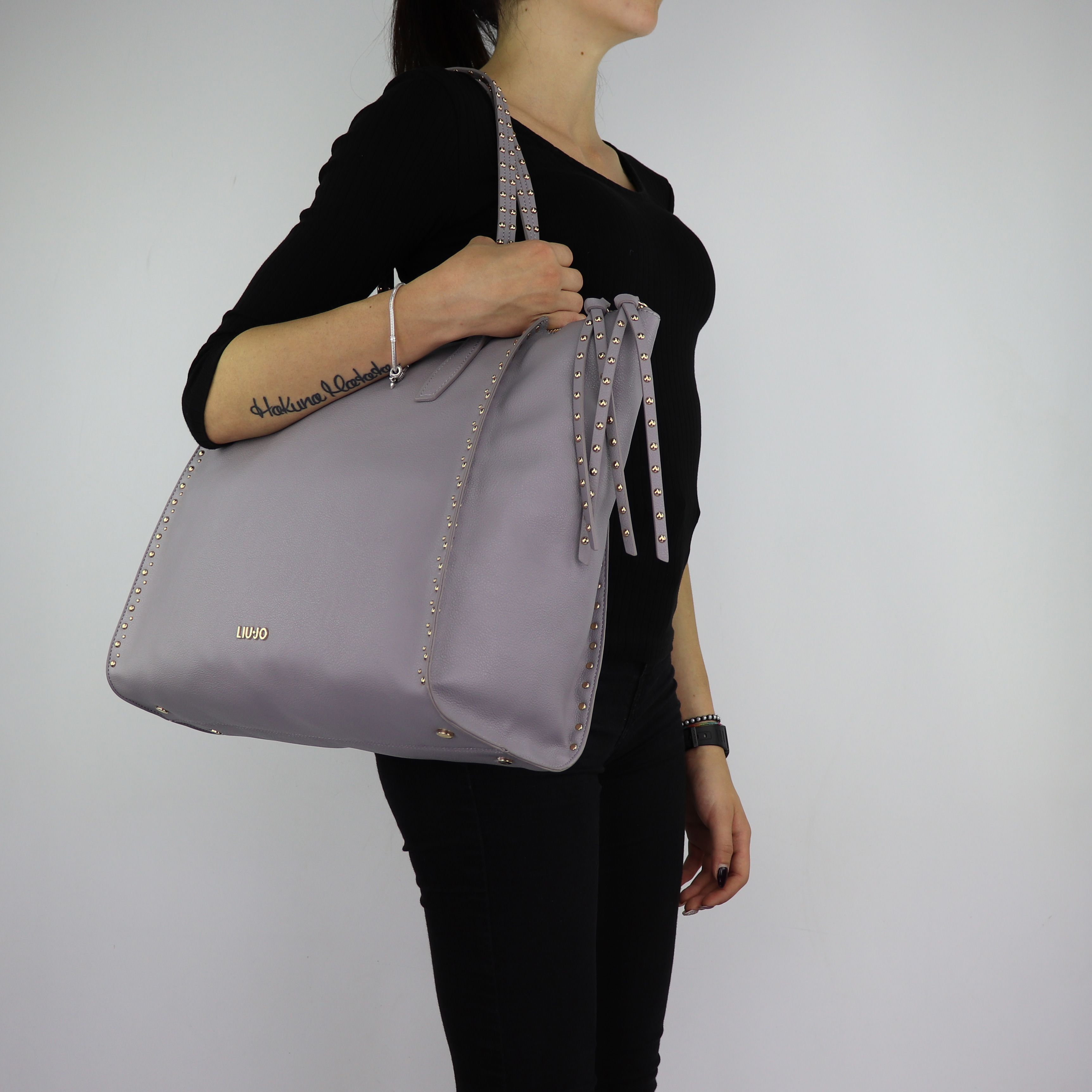 Shopping bag Liu Jo color ice leather effect wool, with double handle and also in imitation leather, on which are applied micro golden studs. The shopping has a spacious and comfortable compartment lockable with double zip closure golden on them are applied to two fringes in synthetic leather with micro-studs of gold. The interior is lined in black fabric with small butterflies, flowers, and written in italics of the brand dark red. The bag is also provided of two pockets for door objects, one of which is lockable with zip. The front bottom is placed the lettering of the logo in golden metal, the sides were applied micro studs which complement the style of the handles. At the bottom of the bag, there are protective feet. Bag protect dust, including the original.