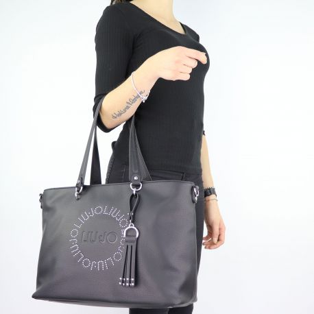 Shopping bag Liu Jo black leather effect wool. The bag is equipped with two handles and an adjustable shoulder strap and removable at pleasure; it presents you with a large compartment lockable zip silver. Inside the bag there are two storage pockets one of which is closable with a zip; the inside lining of the lining is in effect fabric pied de poule black and white. From the front, the center, the the bag has the engraving of the logo of the brand and pattern written Liu Jo, in the form circular, with micro-studs in silver metal. The bag is embellished with a pendant with applications of fringes of leather and micro-studs in silver-plated metal removable at pleasure. Bag protect dust, including the original.