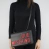 Shoulder bag Love Moschino made of black artificial leather. The logo of the brand, red bordered of black, is applied on the front side, and for almost all its extension. Closure with flap and magnetic buttons; applications of silver. The interior has a storage pocket and a fabric lining red. Bag protect dust, including the original.