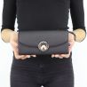 Wallet Liu Jo black leather effect wool, closable with button pressure. The portfolio you submit with flap closure and snap button, embellished with an insert made of golden metal in the shape of a circle with an engraving of the the logo of the brand. Inside has two large compartments: one port euro banknotes and documents, and the other a coin pocket secured with a zip. The lining covering the internal is black fabric. On the back has a pocket with a carrying case python closed with gold zipper and removable at pleasure, according to your needs. Logo Lettering Liu Jo gilded metal located at the rear of. The article is sold with in original box.