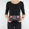 Cartera de Liu Jo efecto de piel de lana negro, solapa de cierre y botón a presión en la que se aplica una hebilla de metal con la imagen de una serpiente y un bordado de flores del gusto romántico, muy femenino, le da un toque de originalidad a la cartera. La cartera cuenta con cuatro grandes compartimentos de monedas del bolsillo cerrado con cremallera, puerto de billetes de banco, los documentos o tarjetas. El revestimiento el revestimiento interior es de tela de color rosa. Logotipo de Letras de Liu Jo dorado ubicado en la parte posterior de. El artículo se vende con caja original.