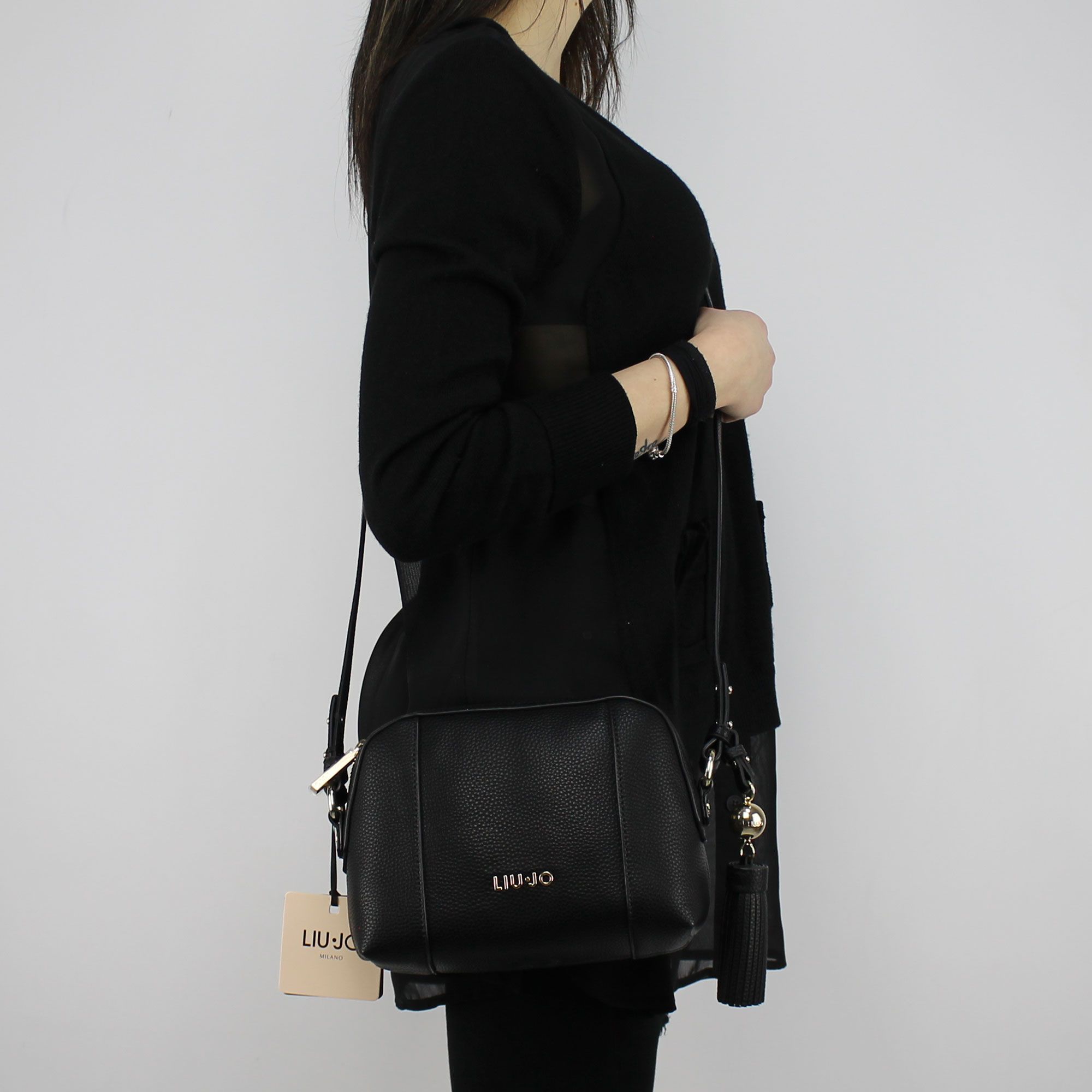 Bolsa de tracollina Liu Jo xs crossbody de arizona de cuero negro, con tracollina ajustable. Cierre con cremallera de color oro, el logotipo de la marca aplicada en la parte delantera. Y' este es un colgante con extraíble de cuero y oro. Dentro de los bolsillos para el almacenamiento, forro interior de rayas de color rosa y negro. Bolsa de proteger del polvo, incluyendo el original.