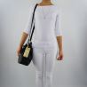 Bolsa de cubo bolso de Love Moschino de imitación de cuero negro, con la aplicación de placas de oro decorativa en ambas caras. El Logotipo de la marca aplicada en la parte delantera. Cierre con cordones para sujetar la correa para el hombro ajustable. En el interior del pequeño bolsillo de almacenamiento, forro interior en color rojo. Bolsa de proteger del polvo, incluyendo el original.