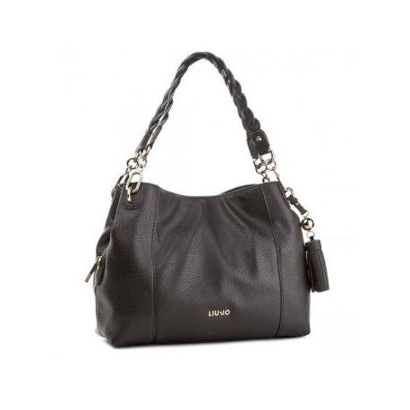 Bolsa de compras de Liu Jo m bolso de arizona de imitación de cuero negro, con doble asa trenzado. Dividido en tres compartimentos: el centro está cerrado por cremallera y dos cerrados magnético botón. Aplicación de un colgante de flecos de cuero de imitación. Logotipo la marca de oro de color aplicado en la parte delantera de la bolsa. Forro interior de rayas negro y rosa, dentro de los bolsillos para el almacenamiento. Bolsa de proteger del polvo original incluido.
