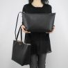 Bolsa de compras por Patrizia Pepe de imitación de cuero negro reversible de color beige. Esta compra puede ser usado desde los dos lados y negro total desde el lado de color beige con asas negro. En el interior hay una bolsa con cierre de cremallera y cierre de seguridad gancho permite que el gancho al cuerpo de la bolsa, y garantizar la unión. El interior de la bolsa, además de este uso, también puede ser utilizado como un una segunda bolsa, y lleva en su hombro gracias a la seguridad de la médula que se enganchan para el bucle apropiado se convierte en una cómoda correa para el hombro. El interior de la bolsa tiene pequeña bolsillos, uno con cremallera. El principal carrocería tiene dos cordones para el lazo para el cierre externo. El logotipo de la marca se aplica a la parte delantera en ambas variantes, el uso del color. La bolsa se suministra con una bolsa de proteger el polvo de la original con la impresión del logotipo de Patrizia Pepe.