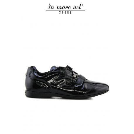 ALLAC CASUAL NEGRO BRILLANTE BECERRO HEBILLAS DE CORREA DE PLACC METAL ARG AG LOGOTIPO