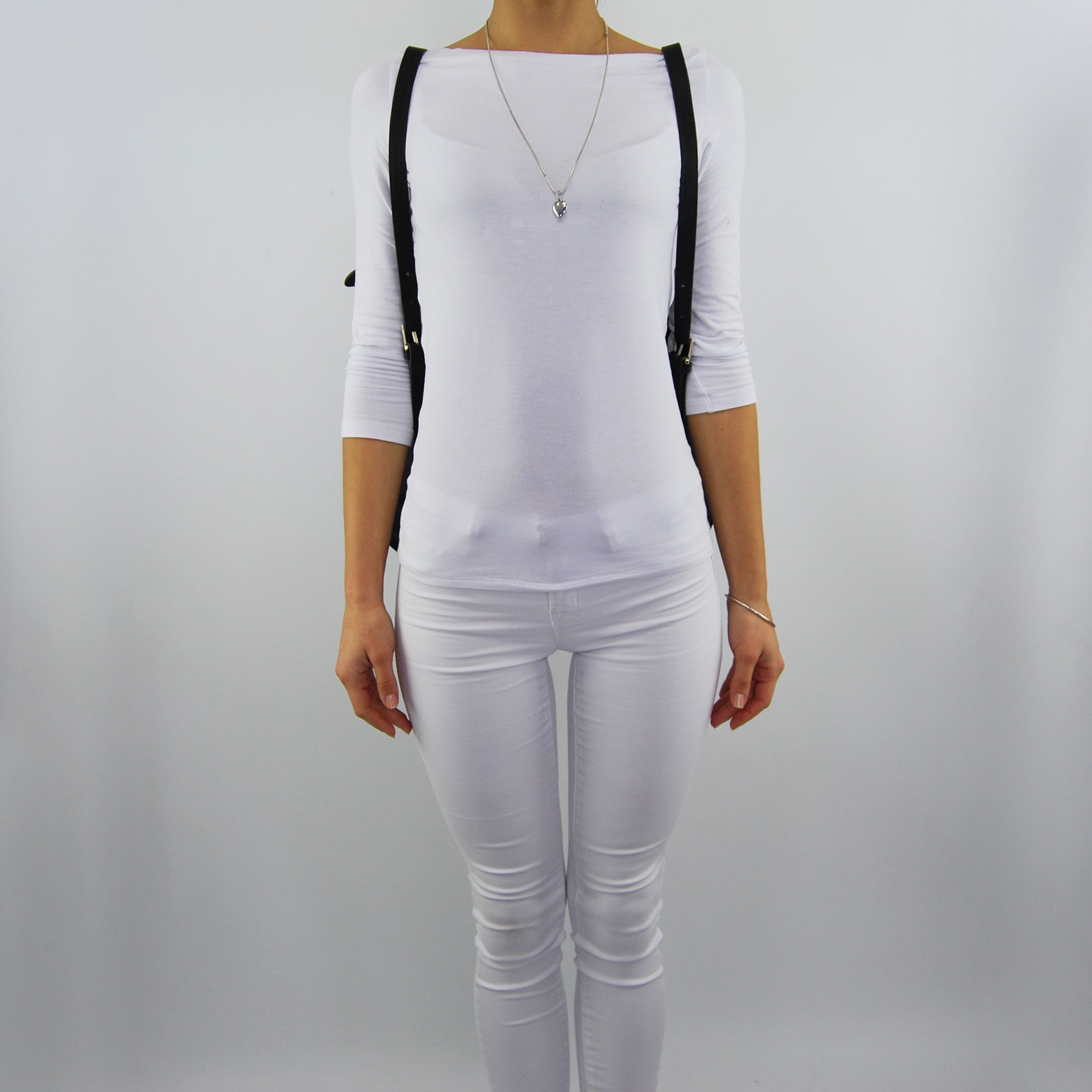 Bolsa mochila de Patrizia Pepe técnica de la tela, de color negro, usado también como una bolsa de vagabundo. Dos pequeños bolsillos en la parte delantera con cierre de cremallera de color dorado, placa de negro con Patrizia Pepe logo aplicado. Cierre con cremallera, bolsillos interiores para almacenamiento. Bolsa de proteger del polvo, incluyendo el original.
