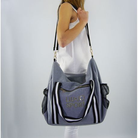 Mercado bursátil de la bolsa de Liu Jo Deporte gris melangiato, equipado con doble asa y correa para el hombro extraíble. Cierre con cremallera. Logotipo de Liu Jo Deporte en oro de lentejuelas en la parte la parte frontal de la bolsa, dos bolsillos en los laterales para guardar objetos pequeños. Bolsillo interno cerrado con cremallera, forro interior gris.
