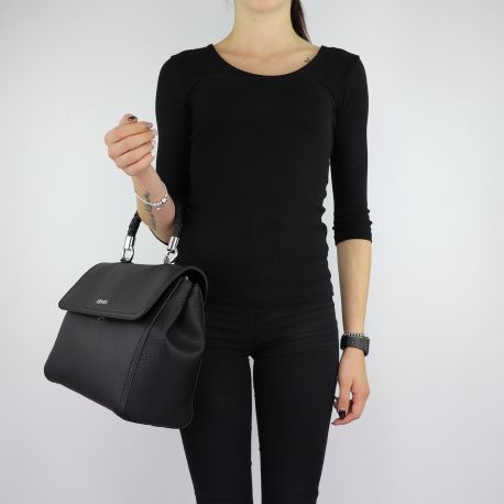 Bolsa de carpeta de Liu Jo efecto de piel de lana y negro. La carpeta está adornado con un único trenzado de manejar y ganchos en plata chapado de metal. La bolsa tiene una correa de hombro ajustable y aplicable a voluntad. Cierre con solapa y cierre con broche de plata chapado de enclavamiento. Las letras de la marca en el metal de plata aplicado en la solapa delantera. La bolsa se compone de un único compartimento principal y bolsillos para puerta de objetos, uno de los cuales con cierre con cremallera. El forro interior es de color rosa y antigua. Bolsa de proteger del polvo, incluyendo el original.