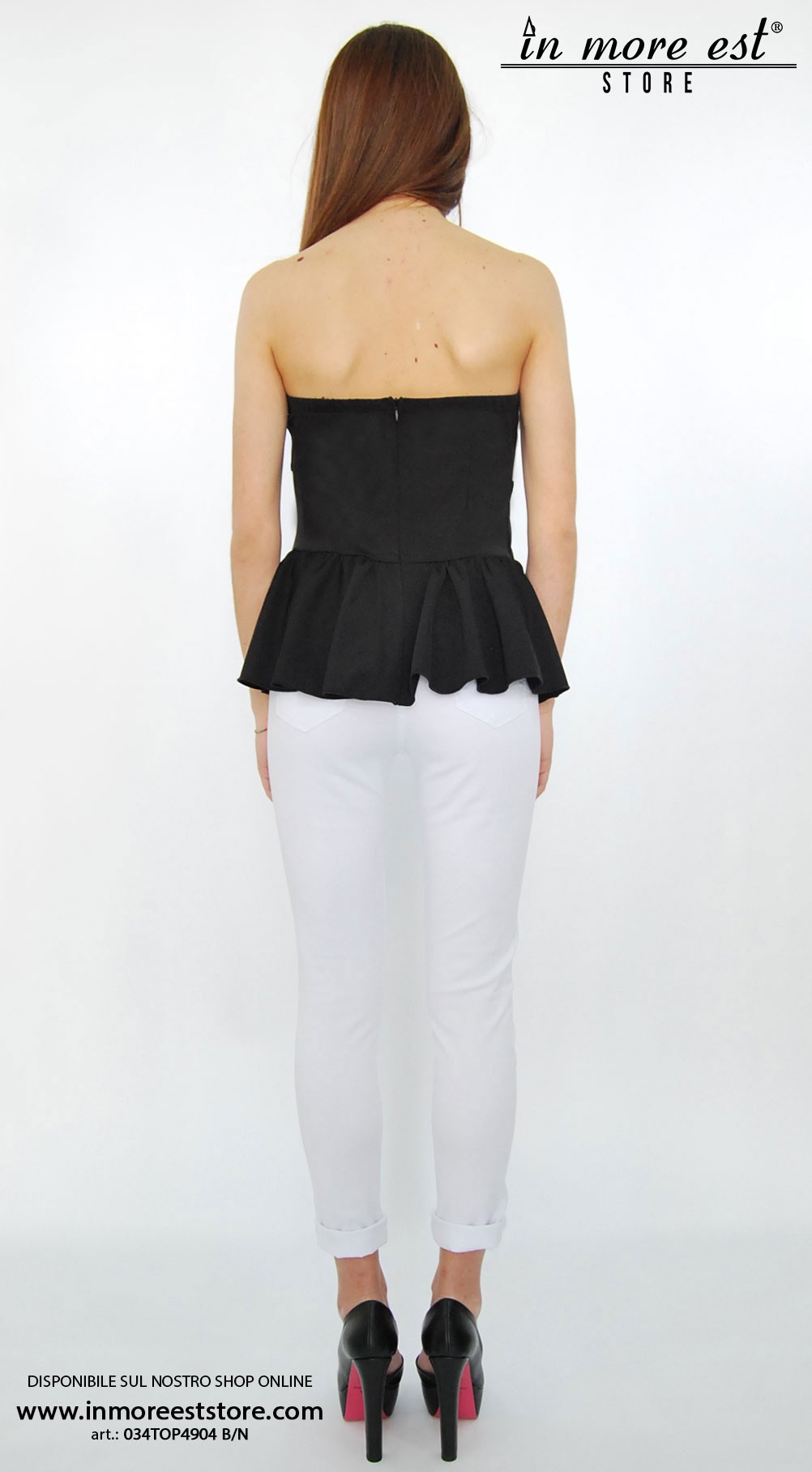 Top blanco/negro, sin tirantes con volante a continuación. Nombre De La Marca Everis