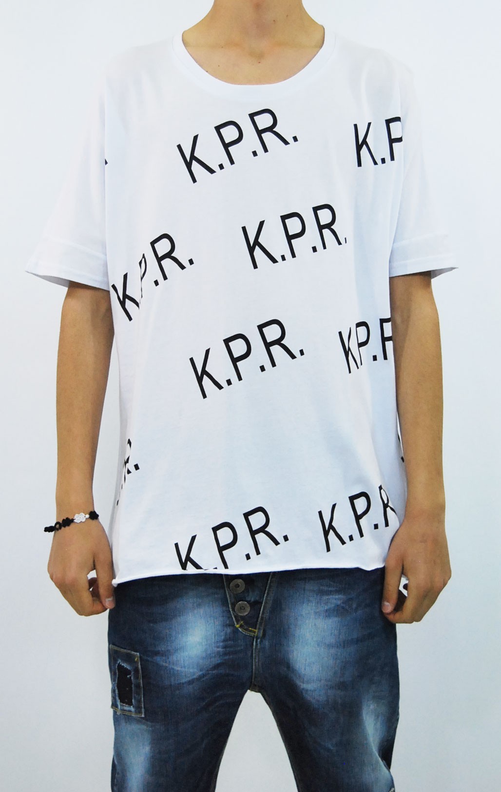 camiseta blanca con corte murciélago logotipo de la KPR de algodón