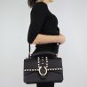 Bolsa de mano y correa para el hombro Liu Jo negro de piel artificial efecto de lana. La bolsa de un solo mango unido a la bolsa a través de anillos de metal de oro, a la cual es posible únete a la correa de hombro. La solapa delantera de las características de la aplicación de micro-tacos de oro de diferentes tamaños y perlas que le dan un estilo de rock a la bolsa, pero la que lo hace aún más elegante y sofisticado, es la representación de una serpiente por encima de la ranura de cierre. La bolsa está dividido en tres compartimentos de las cuales la central cerradura con cierre de cremallera, y también cuenta con un pequeño bolsillo para las mezclas. El forro interior es el color de la tela de antigüedades de la rosa. Las Letras del logo de la marca grabado en la parte inferior la parte de atrás en metal plateado. Bolsa de proteger del polvo, incluyendo el original.