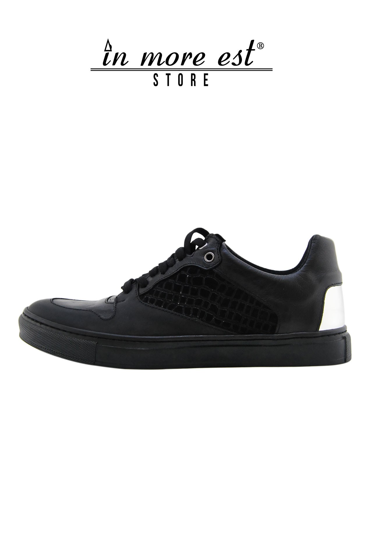• LA ZAPATILLA DE DEPORTE BAJO NEGRO DE LA PANTORRILLA/COCO GAMUZA/LAMINA ARG/GOMA CORDONES