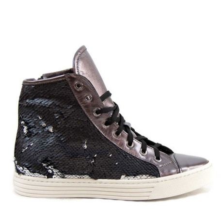 Zapatillas de deporte de cuero con detalle de lentejuelas, interior de cuero, suela de goma Made in Italy