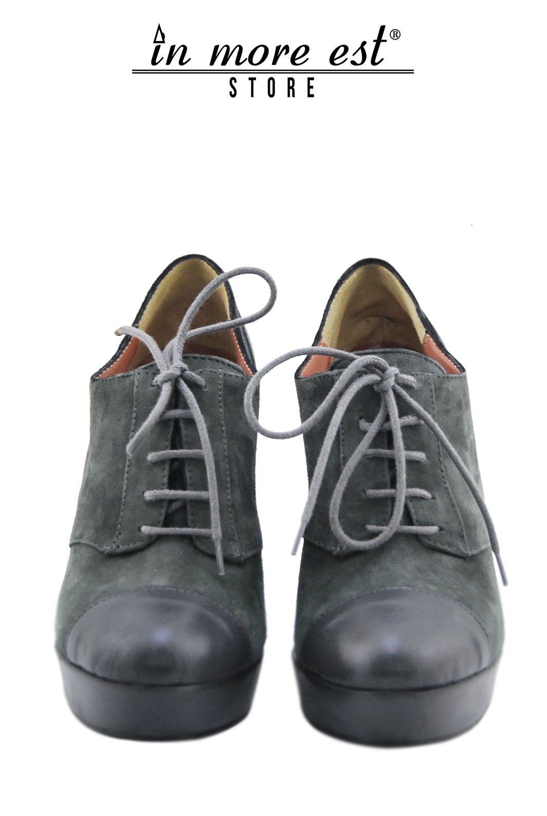 Zapatos Oxford de alta de gamuza y de la pantorrilla antracita