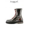 Dr Martens hautes en cuir, semelle extérieure en caoutchouc, transparente, le logo avec de la broderie rouge Doux ans, en dentelle rouge et noir