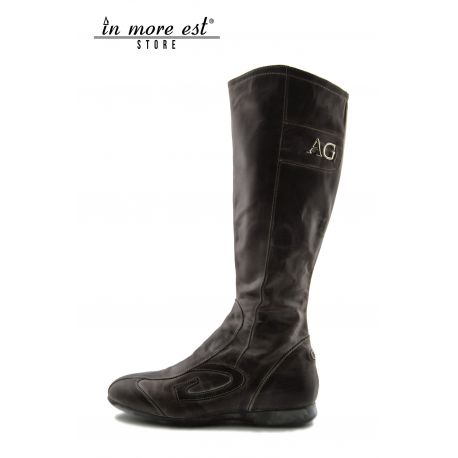 Low boot en cuir de veau, à l'ombre brun, blanc, plaque de métal argent