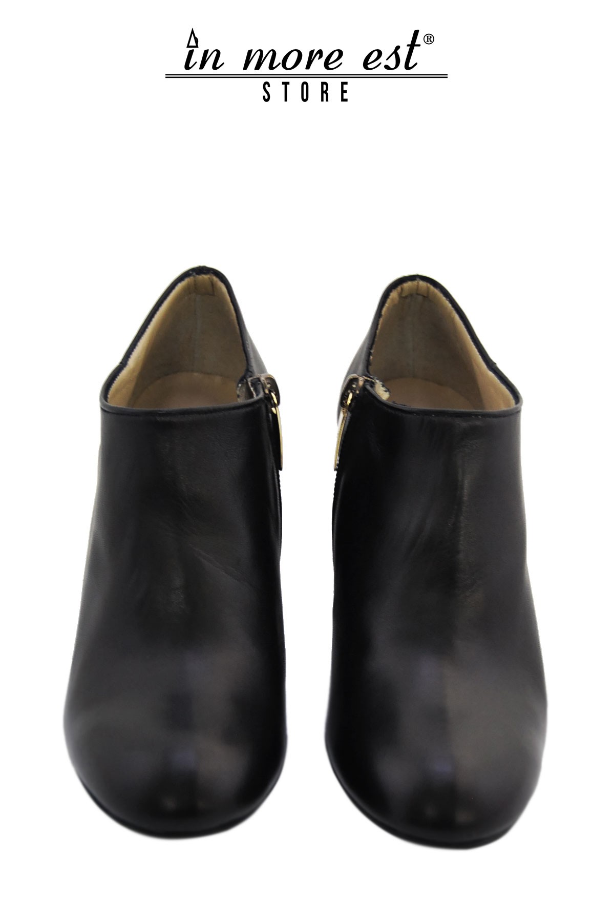 Prise de moyenne en cuir de veau noir, plaque en métal doré