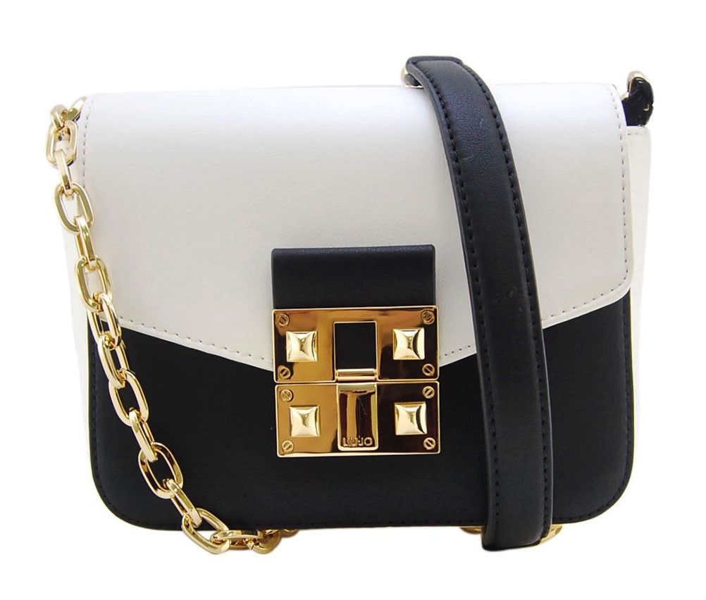 Sac à bandoulière, sac d'embrayage sac, tracollina Liu Jo à deux tons en faux cuir avec bandoulière en chaîne dorée. Fermeture par rabat avec snap shot métal or.