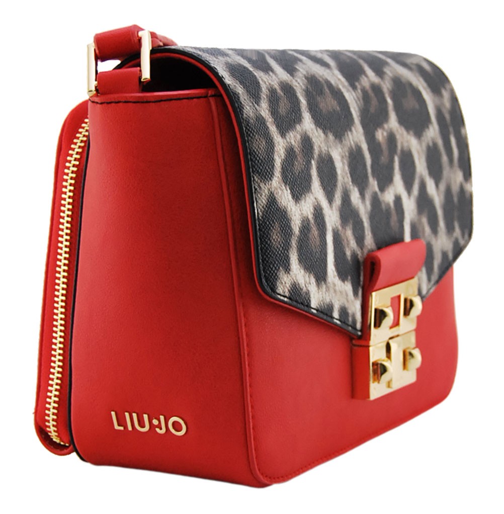 Sac en faux cuir avec rabat de fermeture composant logiciel enfichable, bandoulière, décoré avec de l'or logo, et une pratique à l'extérieur du compartiment avec fermeture à pression fermeture zip or. Décorées avec des rivets pyramide de couleur d'or.